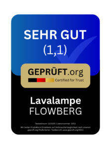 Mit 484 von 500 möglichen Punkten erreicht die FLOWBERG Lavalampe die Note 1,1. Das Produkt überzeugt durch eine gute Verarbeitung, hohe Alltagstauglichkeit und ein starkes Preis-Leistungs-Verhältnis. Die geprüften Kriterien wurden nahezu vollständig erfüllt, sodass die Lavalampe insgesamt ein sehr gutes Testergebnis erzielt.