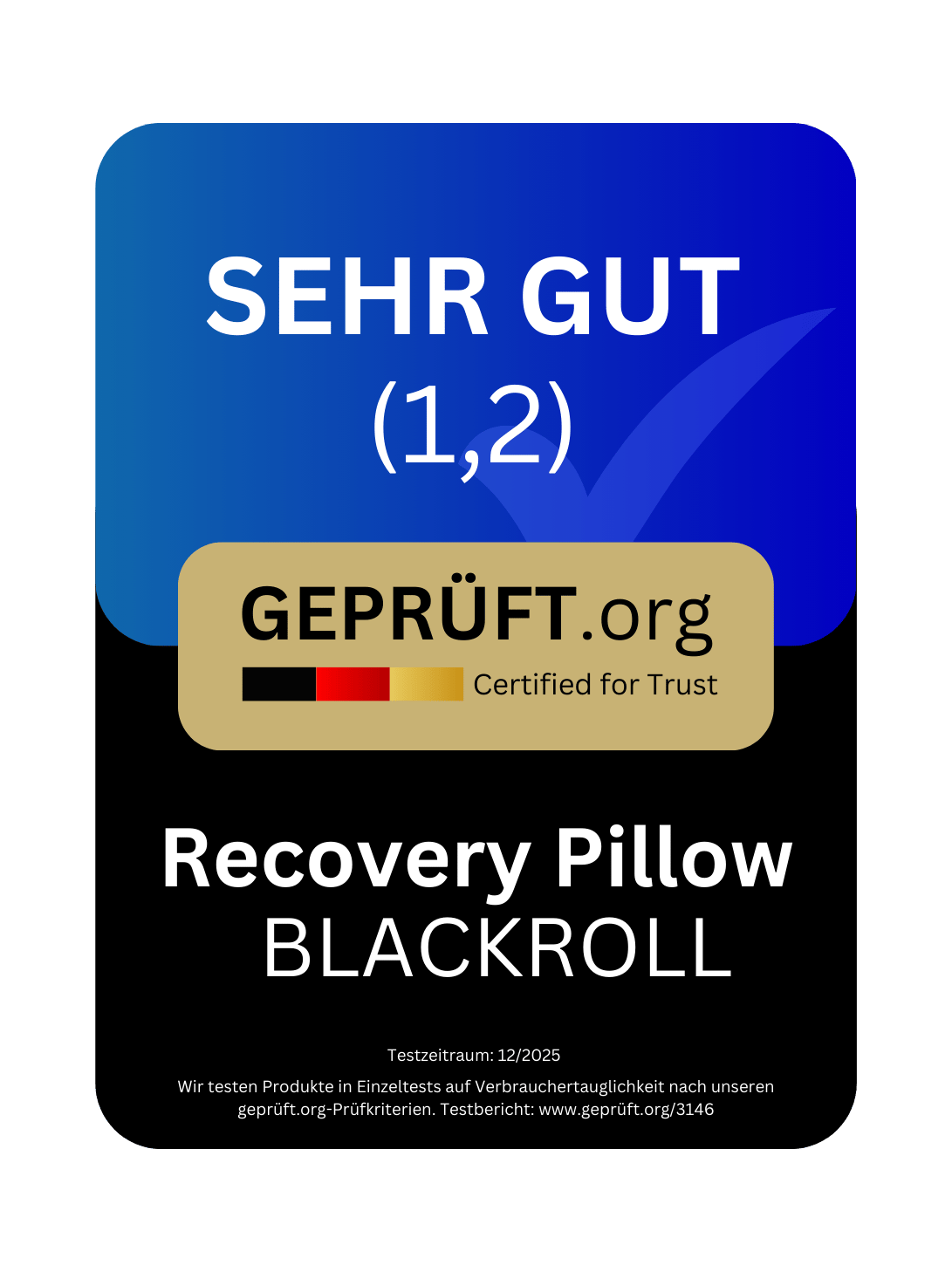 Das Recovery Pillow von BLACKROLL wurde am 29.12.2025 im Rahmen des standardisierten Prüfverfahrens von geprüft.org bewertet. Grundlage der Prüfung waren die formale Zulassungsprüfung (Stufe 0) sowie die praxisorientierten Bewertungsstufen gemäß Prüfer-Checkliste. Die Bewertung erfolgte ausschließlich auf Basis der vorliegenden Produktunterlagen, der physischen Begutachtung sowie der dokumentierten Einzelkriterien. Das Produkt erfüllte alle formalen Voraussetzungen und wurde vollständig geprüft. :contentReference[oaicite:0]{index=0}