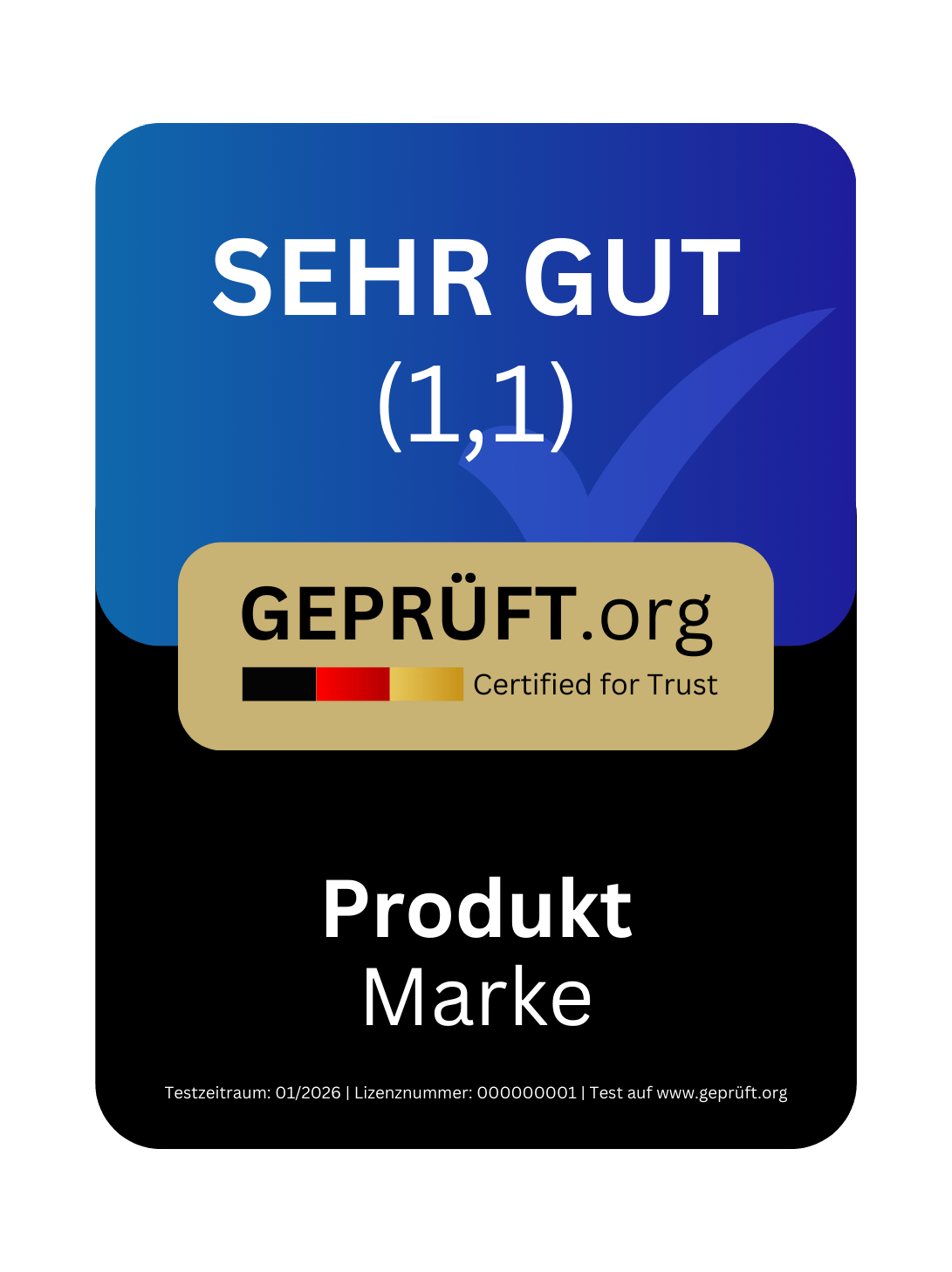 Genau an diesem Punkt setzt geprüft.org an. Unsere unabhängigen Prüfsiegel wirken dort, wo Kaufentscheidungen fallen: auf der Produktseite. Sie reduzieren Zweifel, erhöhen das Vertrauen und können so die Konversionsrate messbar steigern.