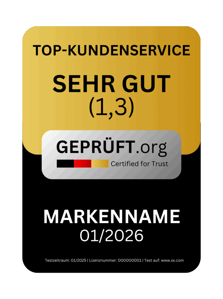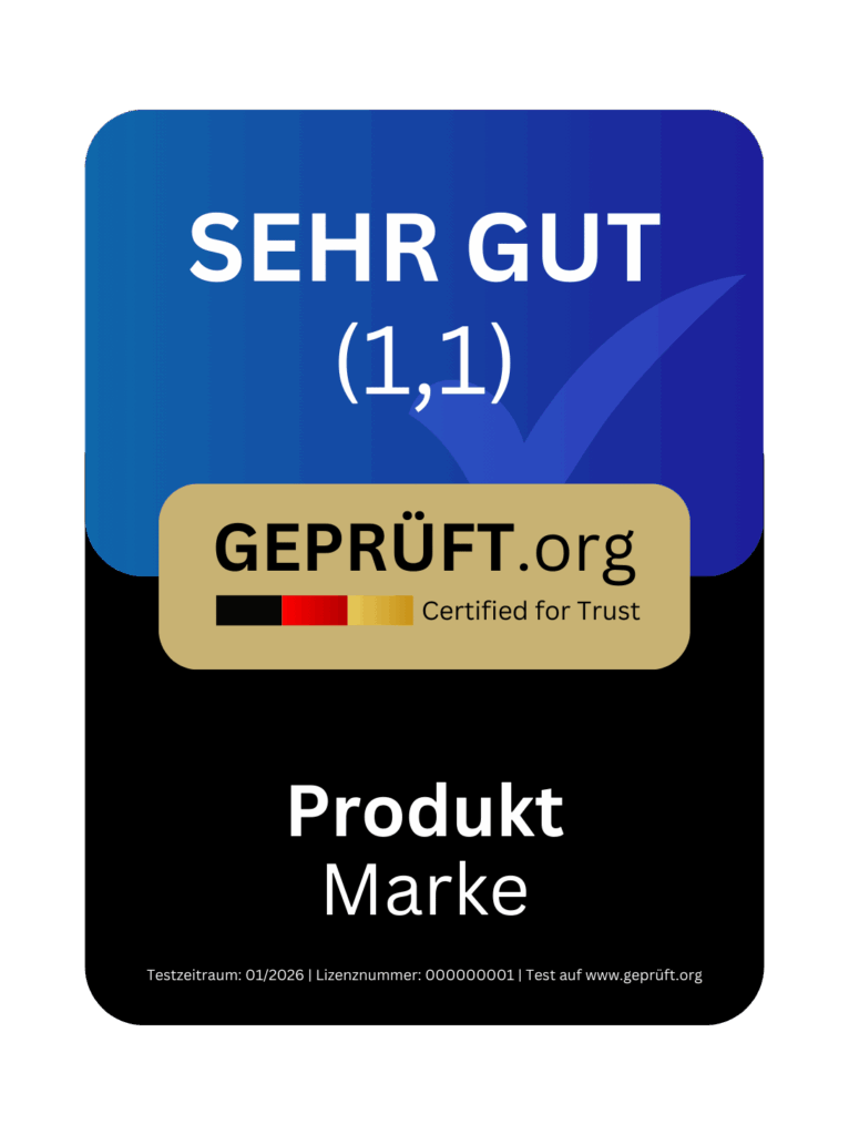 Gerade im Online-Handel – insbesondere auf großen Marktplätzen – sind zahlreiche inoffizielle Siegel im Umlauf, deren Aussagekraft für Verbraucher oft schwer nachvollziehbar ist. Deshalb folgen alle Prüfungen bei geprüft.org einem festen, gleichbleibenden Prozess, der eine Einflussnahme durch Unternehmen ausschließt.